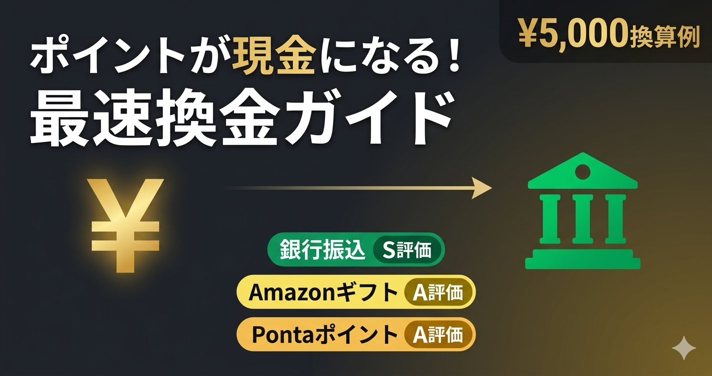 💡 現金(銀行振込)が最もシンプルでレートも等価(1pt=1円)。 手数料無料の銀行(楽天・PayPay銀行等)を使えば完全に損なし。